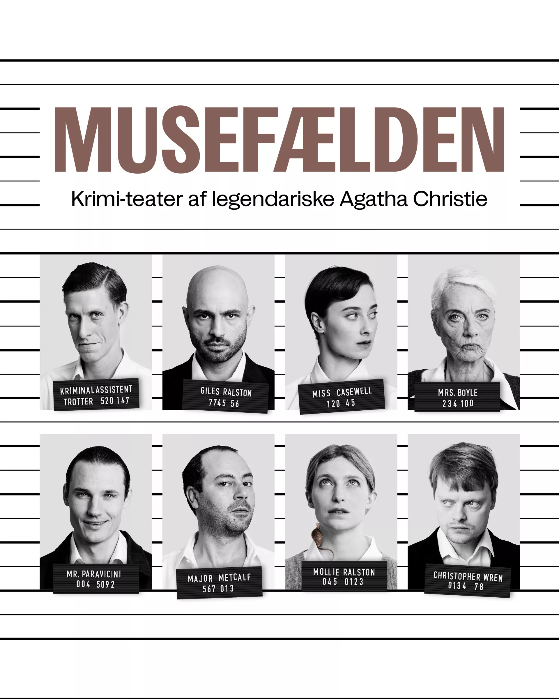 MUSEFÆLDEN har verdensrekorden som den mest spillede teaterforestilling med over 30.000 opførelser i Londons West End siden premieren i 1952. Nu får publikum i hele Danmark mulighed for at opleve Agatha Christies krimiklassiker i en moderne opsætning, hvor ingen slipper ud, før morderen er fundet.